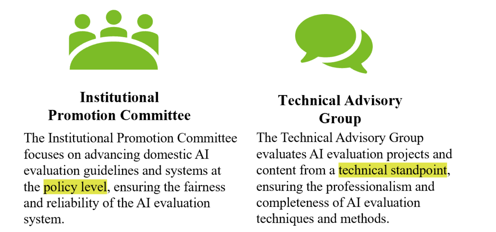 • AIEC: Responsible for developing AI evaluation systems and methods.